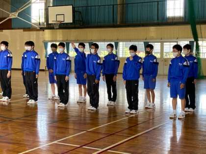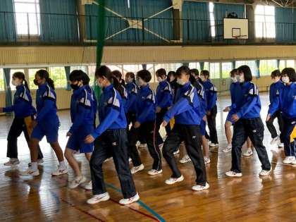 体育では、効率的に授業を進めることができるように集団行動の練習をしました。