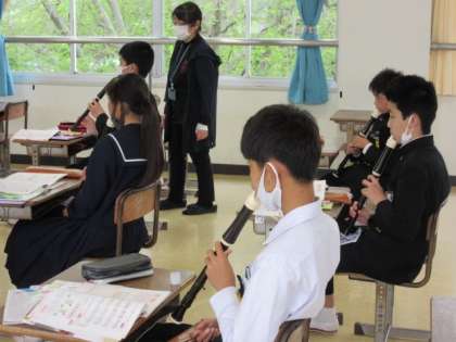 5月7日 アルトリコーダーの練習 公開日 2021/05/07 更新日 2021/05/07 全学年 アルトリコーダーで、タンギングの練習をしています。舌で切って「トゥ、トゥ・・・」とうまく音を出す練習です。何度も練習をがんばりました。 いいね(0)
