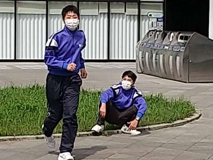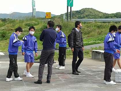 休憩です。到着と同時に窓を開けます。少し体操したり、新鮮な空気を吸ったり。