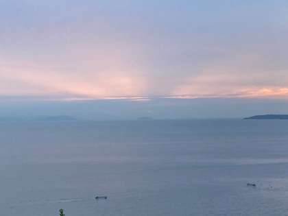 今日は大井の聖が崎からダイヤモンド富士が見える日でしたが、肉眼でなんとか富士山が確認できるぐらいでした。写真ではわかりませんが‥。