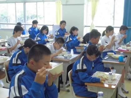 6月8日 給食の様子 公開日 2021/06/08 更新日 2021/06/08 お知らせ 静かに給食を食べています。聞こえてくるのは、広報委員会が流しているお昼の放送です。リクエストされた曲が流れています。毎日リクエスト曲をもってくる生徒もいて,どんな曲が流れるのか楽しみです。 いいね(0)