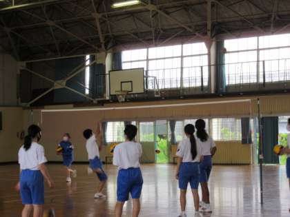 3年生の体育の授業では、バレーボールでもアタックの練習に入っていました。トスを出して、タイミングよく打つ。なかなか難しいようです。これからの試合で打てるといいですね。