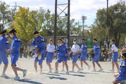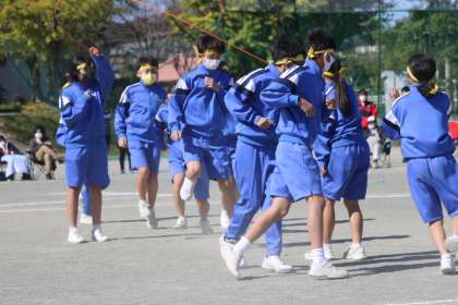 10月23日 大縄8の字跳び 公開日 2021/10/23 更新日 2021/10/23 学校行事 午前中最後の種目となりました。大縄8の字跳びです。リズムよく跳んでいきます。今日の記録もよい記録でした。あと1回で200回のところもありました。練習の成果がやはり出ていました。子どもたちはすごいです。 いいね(0)