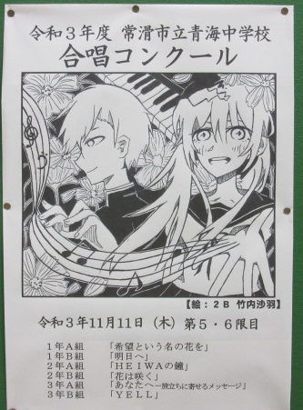 体育祭が終わり、生徒たちの次の目標は合唱コンクールです。音楽の授業だけでなく、朝の練習や授業後の練習も始まります。何事も楽しみながらやっていけたら最高です。まずは、基礎練習や個人練習をしっかりやろう。一人一人がしっかり歌えなければ、合わせたときにも響きません。さあ、どんなふうに仕上がるか楽しみです。いつだって応援しています。がんばって!
