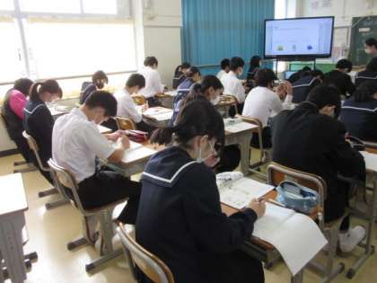 11月4日 お気に入り紹介 公開日 2021/11/04 更新日 2021/11/04 3年生より 3年生の英語の授業です。自分の筆箱の中から、友達に紹介したいものを一つ選んで英文にします。お気に入りのものがさっと決まる生徒とずっと考えている生徒がいましたが、みんな何とか間に合って紹介できたでしょうか。 いいね(0)