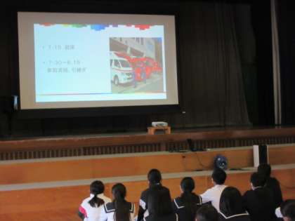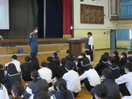 11月4日 消防士さんのお話 公開日 2021/11/04 更新日 2021/11/04 学校行事 2年生は体育館で消防士さんの仕事について学びました。人の命を守るために懸命に仕事をされていることがよく分かりました。最後には代表生徒からのお礼の言葉がありました。 いいね(0)