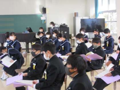 11月9日 楽しそう 公開日 2021/11/09 更新日 2021/11/09 1年生より 1年生の音楽の授業です。昨日のリハーサルの表情とは違って、今日は楽しそうです。発声練習に力を入れていました。何事も楽しくやらなくては。これなら大丈夫! いいね(0)