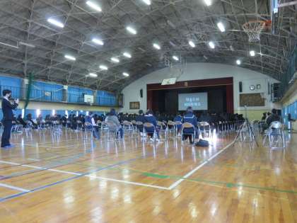 講演会は終始、全校生徒が真剣に耳を傾け、メモをとっている生徒もいました。