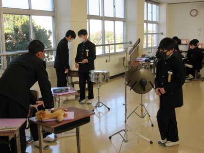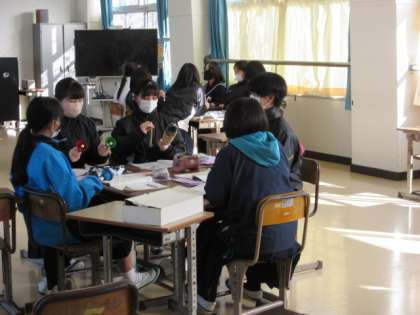 1年生の音楽は、構成図を考えていました。自分たちでストーリーを考え、構成図を完成させます。使用する楽器もグループによって違うようです。発表が楽しみです。