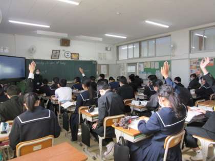 3年生の英語の授業です。質問されたことに対して、次から次へと手を挙げて答えていきます。この光景がたまらなくいいなあ。かっこいい!