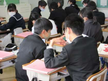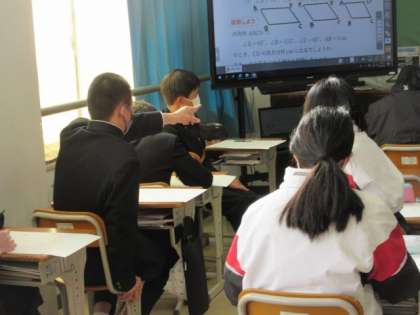 1月12日 相談タイム 公開日 2022/01/12 更新日 2022/01/12 2年生より 2年生の数学です。自分が考えた後に相談タイムがありました。友達に考えを伝えて、確かめることができると安心します。まずは相談してみる。この時間を大切に。 いいね(0)