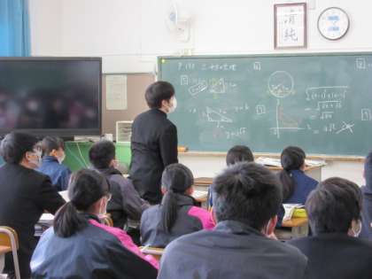 3年生の数学の授業では、三平方の定理の学習をしていました。この学習を通して、生徒の皆さんは、紙の大きさのA判・B判の秘密を知ってしまったようです。今まで知らなかったことが分かる瞬間って楽しいですね。