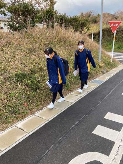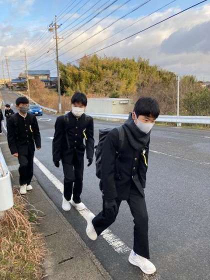 朝、雪が降ったのか、道路がぬれています。