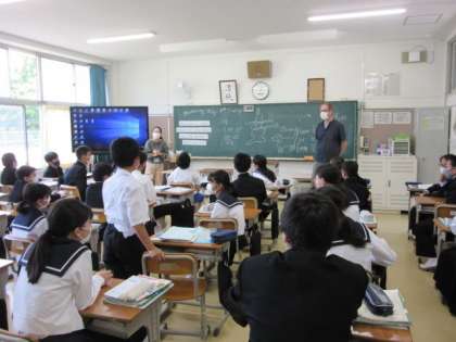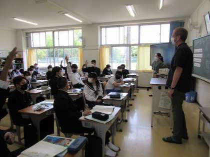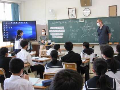 5月18日 ALT初授業 公開日 2022/05/18 更新日 2022/05/18 1年生より ALTの先生が、初めて授業をする日です。まずは、先生の自己紹介。出身地、身長、ペットのことなどを教えてくださいました。その後、生徒たちからの質問、先生からの質問タイムになりました。それにより、先生の好きなスポーツや住んでいる場所などが分かりました。英語で自然と話せる生徒も多く感心しました。これからの授業がますます楽しみですね。 いいね(0)