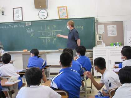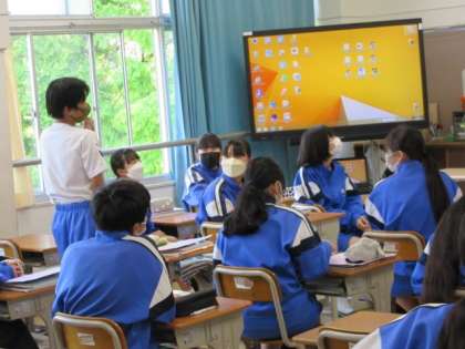 5月18日 ALTとのゲーム 公開日 2022/05/18 更新日 2022/05/18 2年生より 2年生の英語は、ALTの質問に答えて、「○」「×」が縦横3つ揃うゲームをしていました。1年生は聞き取れる内容でしたが、1学年上がるだけで、よく聞いていないと分からない内容でした。それでも、質問を理解し、英語で答えていた生徒たちは、すごい! いいね(0)