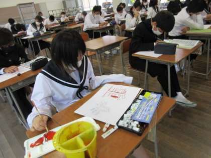 5月23日 完成を楽しみに 公開日 2022/05/23 更新日 2022/05/23 2年生より 左には、自分が選んだ漢字を、右には、その漢字からイメージするものをかきます。それもできている生徒は色塗りに進みます。進度はさまざまでしたが、どの生徒も一生懸命取り組んでいました。完成を楽しみにしています。 いいね(0)