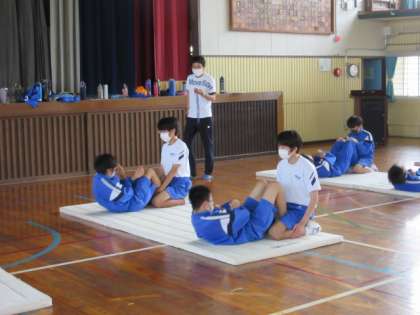 5月24日 体力テスト4 公開日 2022/05/24 更新日 2022/05/24 全学年 手を胸のところでクロスしての上体起こし。1、2と自分のペースで体を起こします。後半は、かなりきつそうでしたが、よくがんばりました。 いいね(0)