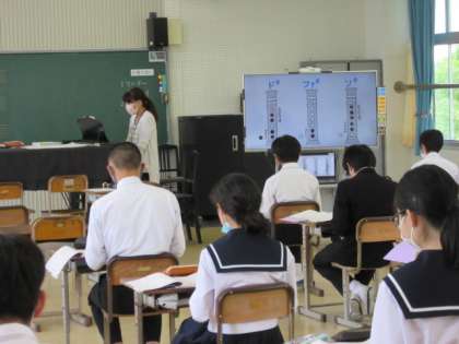3年生の音楽では、アルトリコーダーで「星に願いを」を演奏していました。美しい音色を響かせようと何回も練習をしていました。
