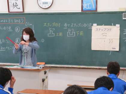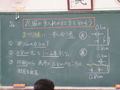 衣服の手入れの仕方を学びました! 公開日 2022/06/14 更新日 2022/06/14 1年生より まつり縫いのやり方をていねいに学びました!先生が、図を使って分かりやすく説明されていました。その後の、スナップつけの説明もとても分かりやすかったです。 いいね(0)