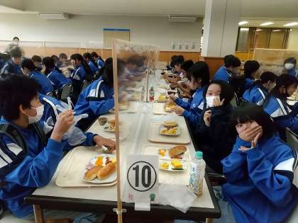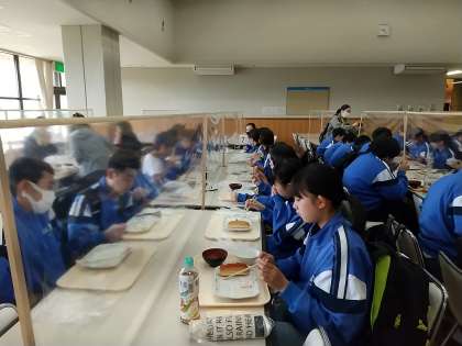 おかわりをしている生徒もいました。今からハイキングに出かけるので、しっかり食べて出発します。