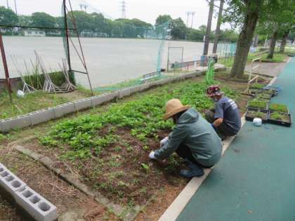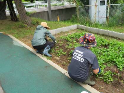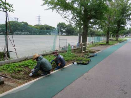 青海中は、緑にあふれた学校です。今日は、用務員さん・学校パートさんの方々が花壇の整備をしてくださっていました。花壇の整備は、できあがりをイメージしながら行ってくださっているのです。花が咲いたときに、どのような花壇になるのか楽しみです!