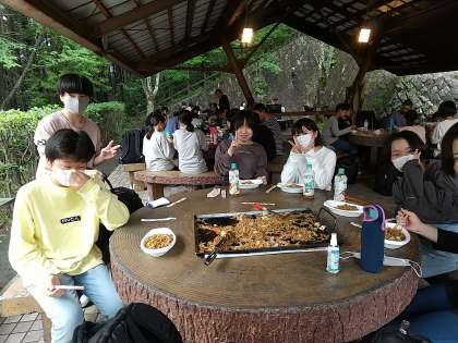 完成したら、鉄板をテーブルの中央に持って来て盛り付けます。