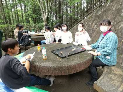班で仲よく食事をしています。