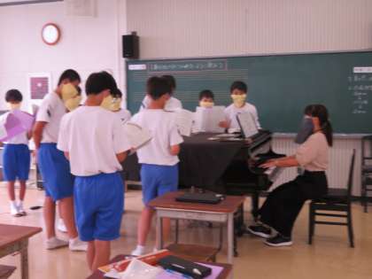 全体練習→パート練習→全体練習 公開日 2022/10/04 更新日 2022/10/04 1年生より 最初の全体練習で、パートごとの課題を考えさせてからパート練習にうつりました。目標が明確なため、きちんとパート練習を行うことができました。最後の全体練習では、課題が克服されてきていました。 いいね(0)