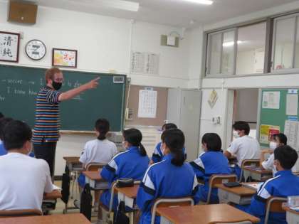 マーティン先生の質問の答えをノートに書き、指名された生徒が英語で答えました。面白い解答に沸くなど、和やかな雰囲気でした。
