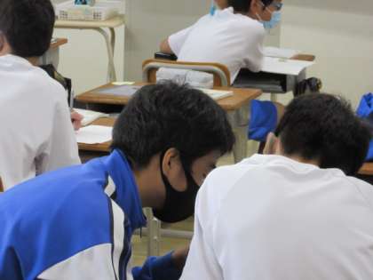 10月5日 いよいよ明日から中間テスト 公開日 2022/10/05 更新日 2022/10/05 1年生より いよいよ明日から中間テストが始まります。テスト範囲の最終確認をしていました。友達と教え合っています。自分のベストが尽くせるように準備をしっかり行い、明日に臨みましょう。 いいね(0)