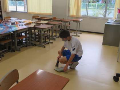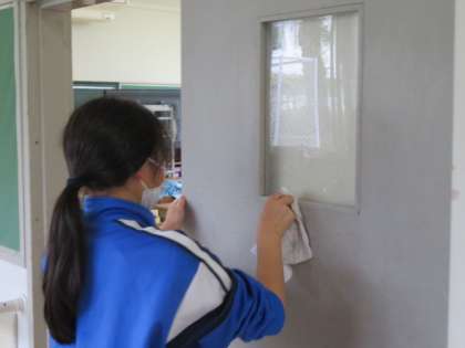 扉の隅まで拭き、一つのゴミも見逃さないように掃除をしていました。