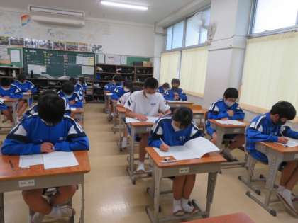 中間テストも最後の時間になりました。1Aの様子です。