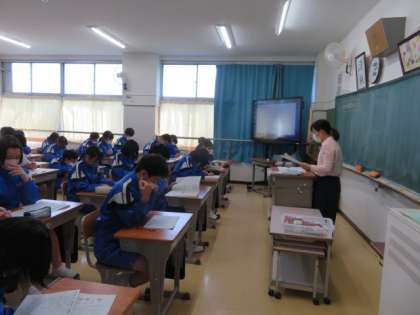 先週行われた中間テストが返却されました。生徒たちは、解説を真剣に聞いていました。
