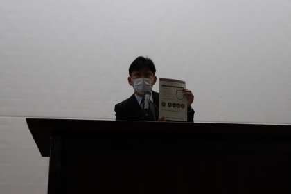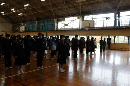 制服エンブレムの応募についての説明もありました。青海中らしさがあふれるエンブレムができ、後輩や自分たちが喜んで着用できる制服に仕上げていきましょう。