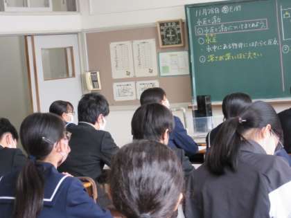 11月28日 自分の言葉で 公開日 2022/11/28 更新日 2022/11/28 3年生より 3年生の理科は、水圧と浮力のまとめをしていました。質問されたことに対して、自分の言葉で答えています。 いいね(0)