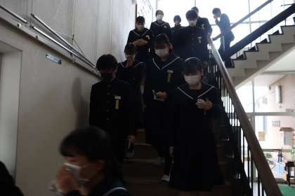 11月28日 火災避難訓練1 公開日 2022/11/28 更新日 2022/11/28 学校行事 理科室から出火。雨のため急遽体育館への避難に。「おはしも」の約束に従って避難していきます。 いいね(0)