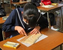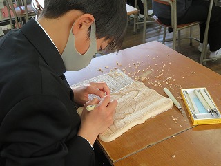 木材を彫刻刀で1 公開日 2023/02/06 更新日 2023/02/06 2年生より 彫刻刀で削りながら、凹凸を作り、絵が表現されていました。ケガには気を付けながら、慎重に掘り進めています。 いいね(0)