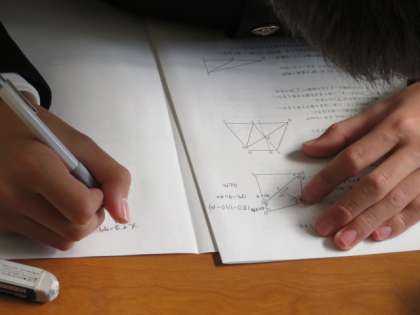数学の問題を試行錯誤しながら取り組んでいます。全員が一生懸命取り組んでいます。