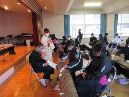2月8日 箏の演奏体験 公開日 2023/02/08 更新日 2023/02/08 1年生より 友達と交代しながら、「かえるのうた」を弾きました。簡単そうで、意外と難しい。でも、だんだん上手になっていきます。 いいね(0)