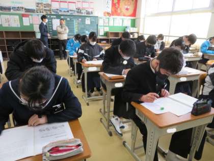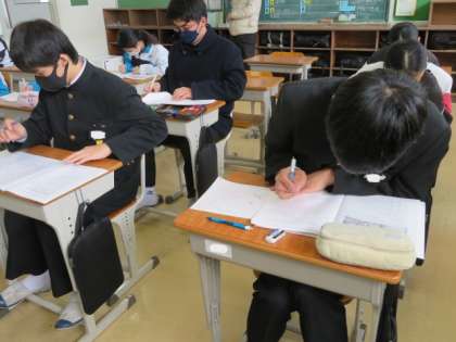 社会の入試対策 公開日 2023/02/20 更新日 2023/02/20 3年生より 入試対策予想問題を行っています。違う答えにはチェックを入れながら、答えを選択している生徒が目立ちました。何度も行ってきたことで、慣れてきました。 いいね(0)