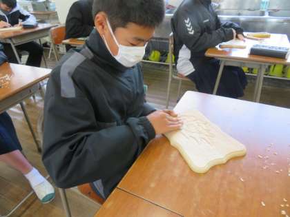 彫刻2 公開日 2023/02/20 更新日 2023/02/20 2年生より 紙やすりの使い方を先生に聞いて紙やすりで削る生徒、色を塗っている生徒、彫っている生徒、など自分のペースを大切にして活動を行っていました。 いいね(0)