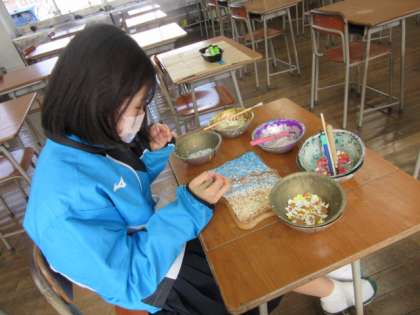 2月21日 細かな作業 公開日 2023/02/21 更新日 2023/02/21 全学年 細かな作業をこつこつと行っていました。写真上段は、卵の殻に色を塗ったものを敷き詰めていきます。色合い・殻の大きさも自分で表現したいように作ります。個々の思いが伝わってくる作品ばかりでした。 いいね(0)