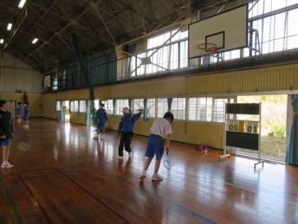 バドミントン 公開日 2023/03/10 更新日 2023/03/10 1年生より 1年生では、バドミントンを行いました。シャトルのリフティングを行い、ペアで回数を数えあいました。みんな楽しそうにやっていました。 いいね(0)