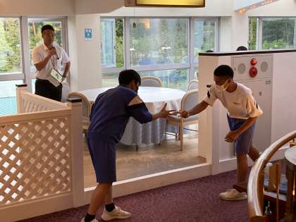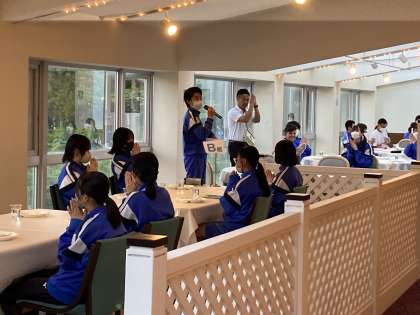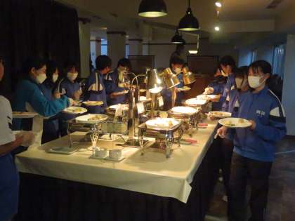 修学旅行1日目16 公開日 2023/05/09 更新日 2023/05/09 3年生より ホテル内のレストランで夕食です。結婚式場のようなオシャレな雰囲気の会場です。バイキングですが、A組かB組かどちらから先に取るか代表者がジャンケン勝負しました。 いいね(0)