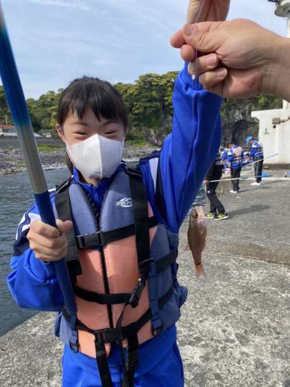 修学旅行2日目9 公開日 2023/05/10 更新日 2023/05/10 3年生より 午後は3コースに分かれて体験活動を行いました。磯釣り体験の様子です。磯釣りと言っても実際は堤防釣りで、全員が救命胴衣を着用して行いました。最高は21匹の釣果でした。大物がかかり、糸を切られた人もいました。 いいね(0)
