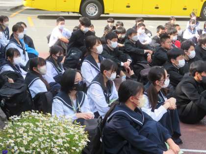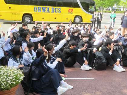 退村式の様子です。ペンションの方が昨晩のペンションステイが楽しかった人?と尋ねられると、たくさんの子どもが手を挙げていました。