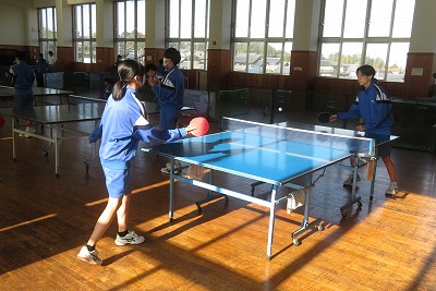 3年生の保健体育の授業では、卓球を行いました。男女共修のため、ゲームを通して、和気あいあいと運動に親しみました。