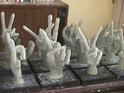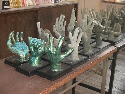 1年生の美術の授業では,このリアル感のある“手の像”を製作しています。細かい部分まで忠実に作られています。