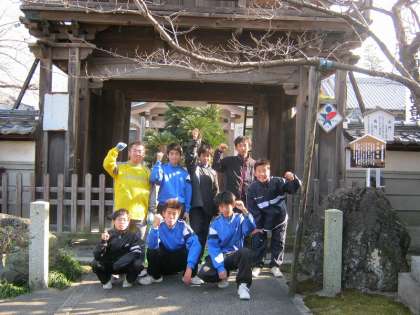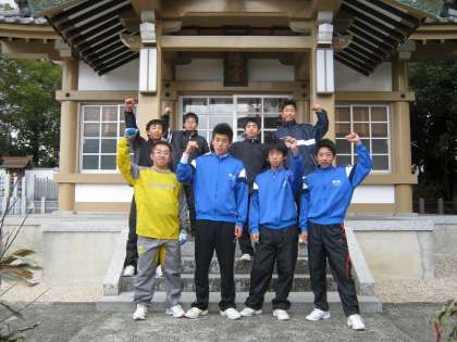 1月4日(水)平成24年の初練習でした。練習参加者は8名と少なかったですが、久米八幡社と大野齋年寺の2カ所に走ってみんなで初詣に行きました。「リフティングがうまくなりますように」「チームで1勝できますように」「フィールドで活躍できますように」など、それぞれがサッカーに関するお願いをしました。顧問の願いは「チーム全員でそろって練習ができますように」でした。