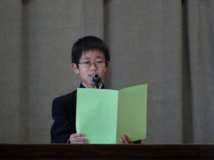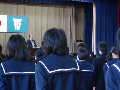 始業式で立派に新年の抱負を述べました